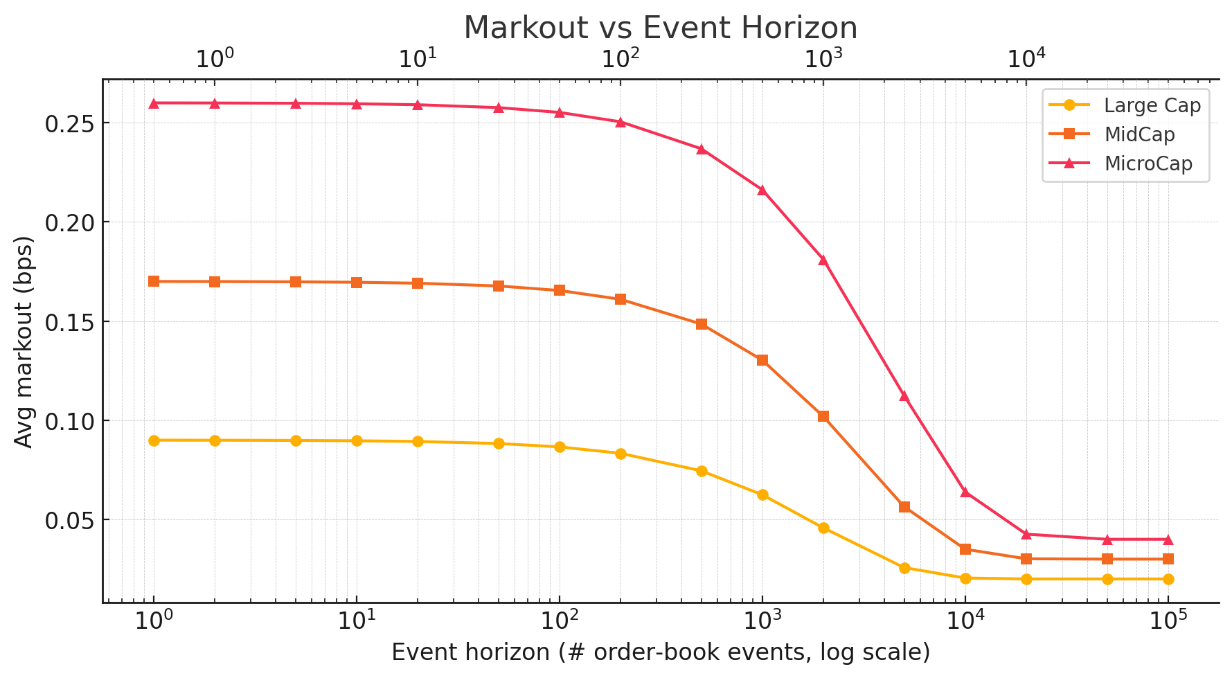 We used event benchmarks instead of time benchmarks. Every time someone executed a trade, cancelled a bid, updated an offer, was counted an event. Any change in the state of the order book reflected someone pricing in new information about the world. We would then benchmark our trading to the market price say 1000 events in the future. For some stocks, this would be milliseconds. For others, minutes. This normalized our performance benchmarks across all different types of stocks and made us more effective in generalizing our strategies.