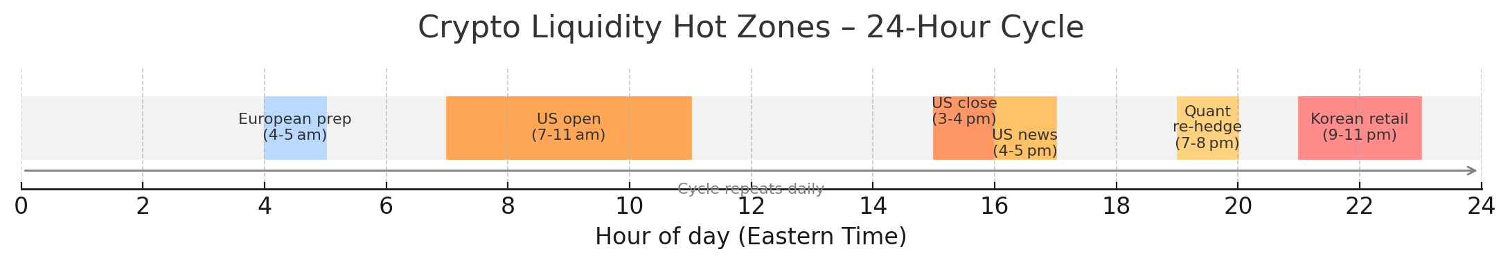 This concept carried with me as I left HFT and moved into crypto discretionary trading. Crypto is the only market that trades 24/7, meaning there simply was no rest for the wicked. The game was less about brilliance and more about being awake when it counted. Resource management around attention and waking hours was a big part of the game. I quickly learned there were only a few important hours that I needed to be awake.